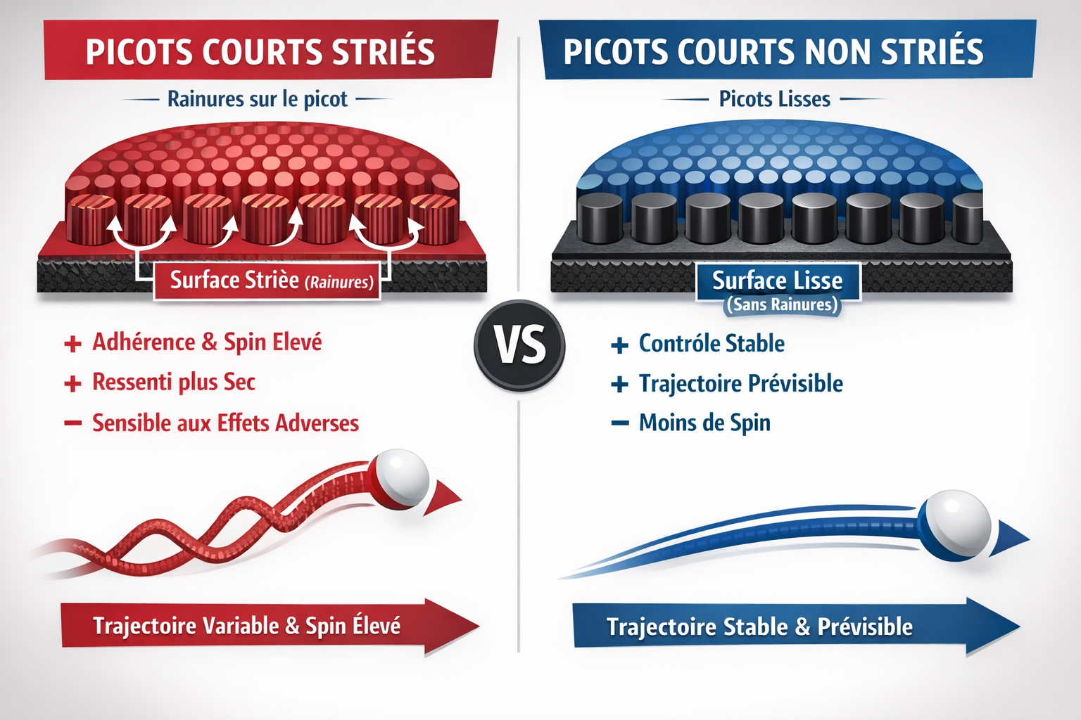 💡 En résumé : « non strié » = surface lisse, trajectoire prévisible, contrôle maximal, moins de spin pur.